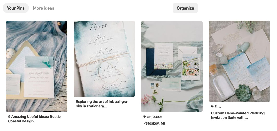 Most wedding planners now offer a “design package”. This is a fabulous idea! Ask your wedding planner to pin inspiration for you. Then, you can set a time to review them together and make final decisions. Your planner—knowing your style and theme—can guide you to the best vendors based off of your pins. They can also pin items they know you can afford based on your budget. That way you aren’t falling in love with letterpress invitations when your budget only allows for digital printing.